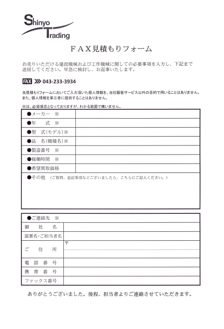 FAX見積もり査定フォームRequest For Quote By Fax